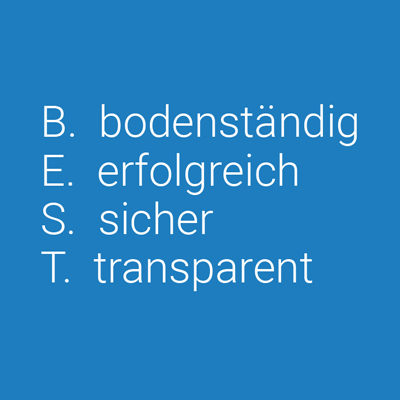 Der Firmenname B.E.S.T. Holding GmbH & Co. KG steht für unsere grundsätzliche Firmenphilosophie und leitet sich ab aus